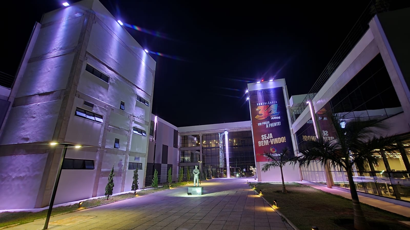 Essa obra especial contempla a implantação de iluminação cênica em todo o Paço Municipal. O projeto tem como objetivo valorizar o edifício, utilizando uma iluminação RBGW que realça sua estrutura arquitetônica.